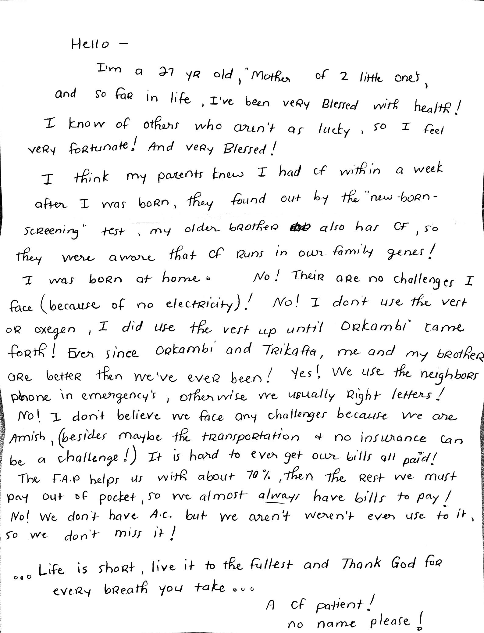 Most importantly, Lejla reminds us that while the cultural context is different, Amish and Mennonite parents hold the same hopes, fears, and love for their children as any other family affected by CF.